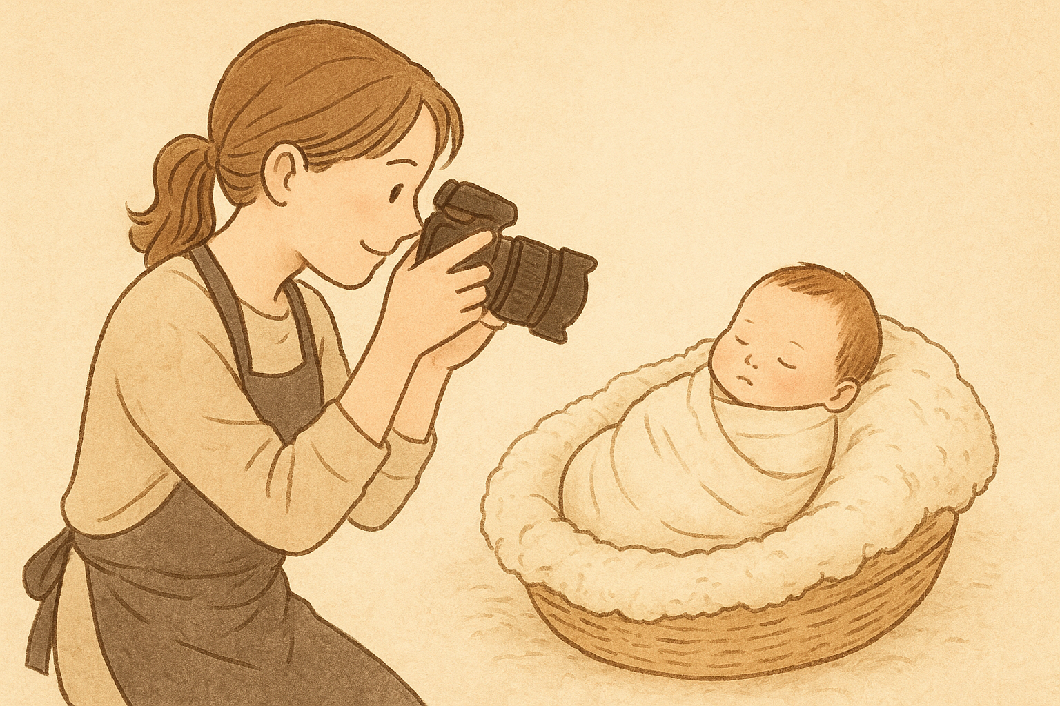 ニューボンフォトとは、新生児期の写真で、胎内姿の写真を撮るので、体が硬くなる前の生後7〜14日(遅くとも30日以内)くらいに撮ります。今回は妻の友人のカメラマンが出産祝いとして撮ってくれました。